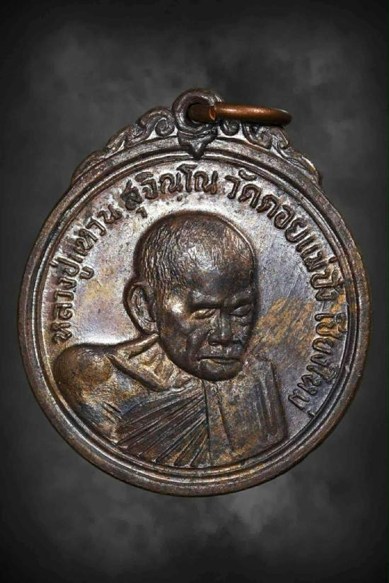 เหรียญหลวงปู่แหวน วัดดอยแม่ปั๋ง รุ่นทูลเกล้า เนื้อทองแดงรมดำ ปี 2517 จ.เชียงใหม่ |