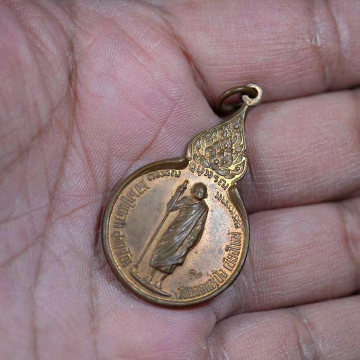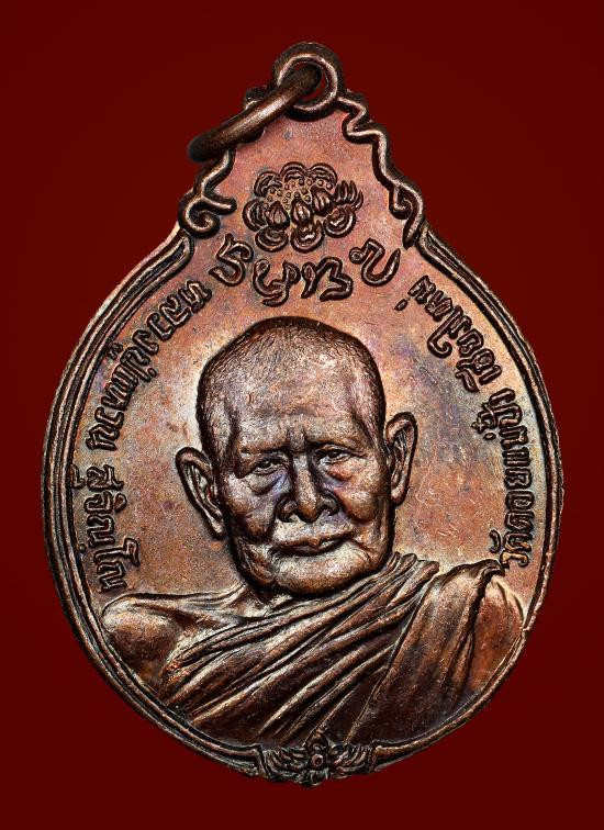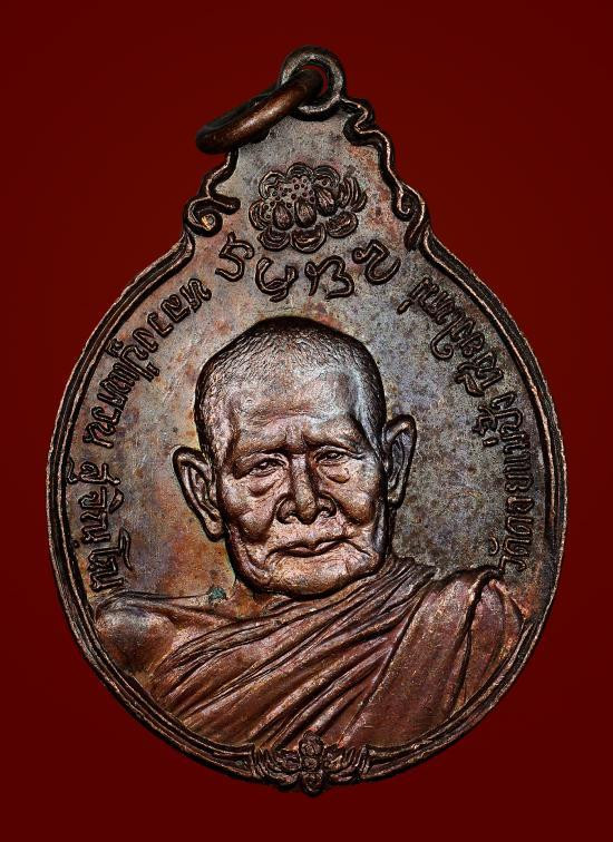 เหรียญฉลองอายุ 98ปี หลวงปู่แหวน หลังดอกบัว ปี 2528 เนื้อทองแดงกะไหล่ทอง พิมพ์ใหญ่และพิมพ์เล็ก ในกล่องกำมะหยี่ (แจกกรรมการ) |