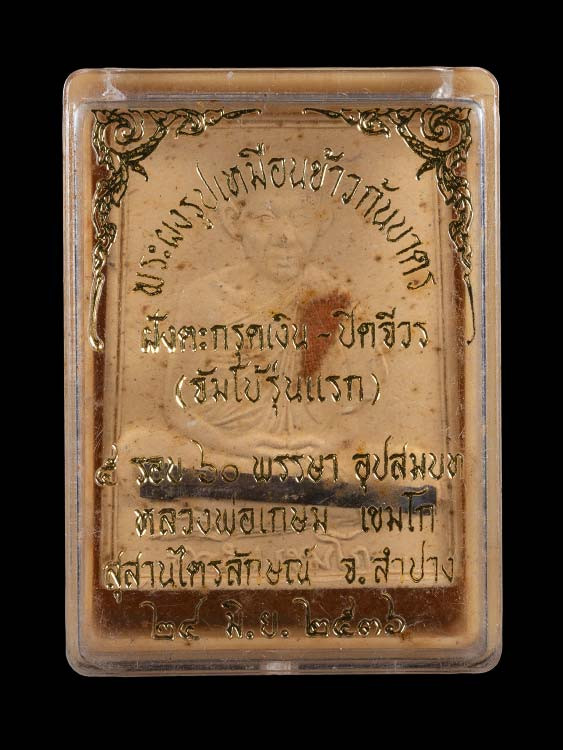118...........พระผงมงคลเกษม รุ่น 3 ฝังพลอยเสก ติดจีวร หลวงพ่อเกษม เขมโก ปี 2523 สวยเดิม เนื้อเหลืองๆเข้มๆ พิมพ์ลึก ...423 |