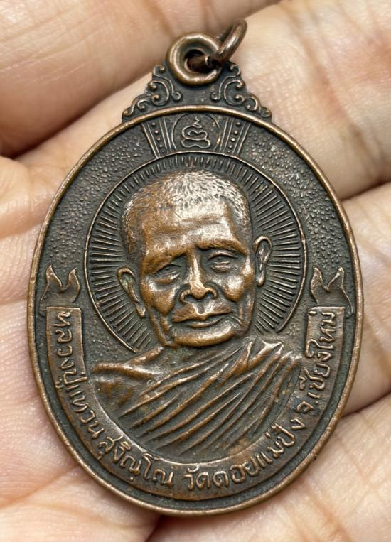เหรียญหลวงปู่แหวน สุจิณฺโณ วัดป่าเจริญธรรม สันป่าตอง เชียงใหม่ ปี2517 เนื้อทองแดง ตอกโค๊ตชัดเจน |