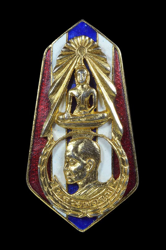 เข็มกลัดครึ่งองค์หันข้าง ( รุ่นแรก ) รุ่น เสาร์ 5 วัดสระแก้ว ( เนื้อกะไหล่ทอง ลงยาลายธงชาติ ) พ.ศ.2523 ** 8 ** |