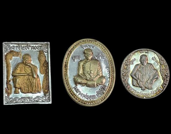 เหมา3 ​เหรียญเสาร์ห้าคูณพันล้านเนื้อเงินหน้าทองพ่นทราย​ เหรียญสี่เหลี่ยมหงส์มังกร หลวงพ่อคูณ เนื้อเงินหน้าทอง |