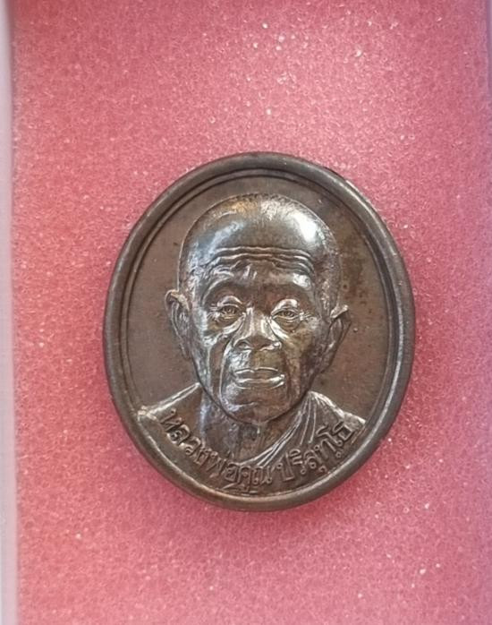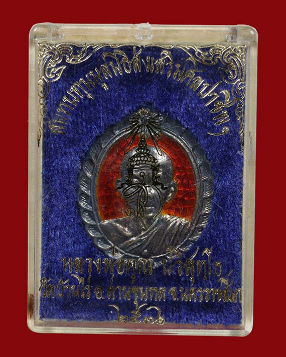 เหรียญรูปเหมือนนั่งบริกรรมคาถาชักประคำ รุ่น ภาวนา ( เนื้อนวโลหะ ) พ.ศ.2536 ( กล่องเดิม ) จัดสร้าง 999 เหรียญ |
