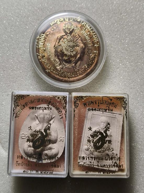 เหรียญ 6 รอบเนื้อเงิน ปี 2537 หมายเลข 365 ผิวเดิมๆมีจาร ไม่มีกล่องนะครับรับประกันตามกฎ |