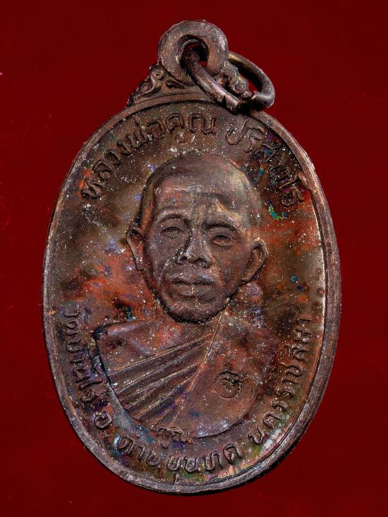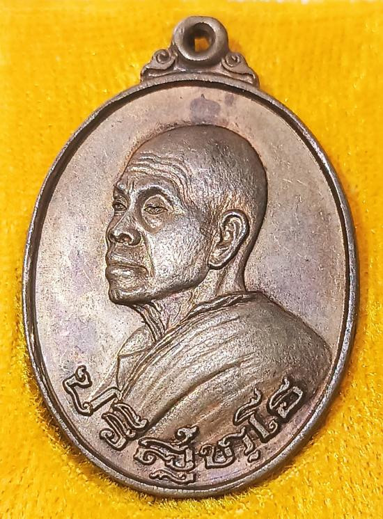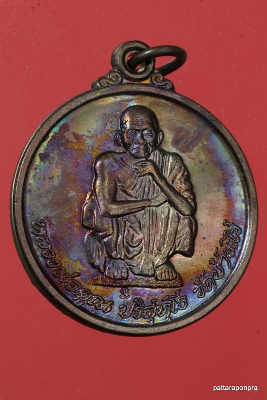 วัดใจ เหรียญนั่งพาน วัดบ้านคลอง เนื้อทองแดง ปี2537 |