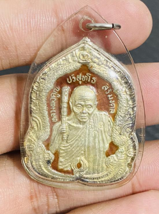 ใบมะขาม หลวงพ่อคูณวัดบ้านไร่ ปี 37 รุ่นเมตตาชายแดน เลี่ยมโลหะชุบทองพร้อมใช้ |