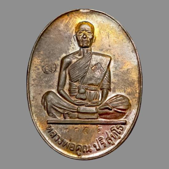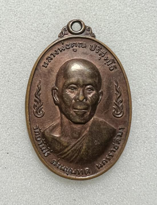 เหรียญรูปไข่ หลวงพ่อคูณ รุ่นคุณพระเทพประทานพร เนื้อฝาบาตร ปั๊มแตก พ.ศ. 2536 ตอกโค้ด พร้อมซองเดิม |
