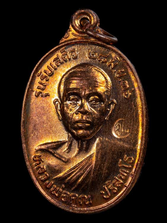 เหรียญกะไหล่รุ้งสีปีกแมลงทับ,สวยยยกริ้ป หลวงพ่อคูณ วัดบ้านไร่ เจริญพรบนเต็มองค์ หนังสือโค้ง หลังขีด เนื้อทองแดง ปี 2536 (สร้าง5,000เหรียญ) กรรมการ ตอกโค๊ตนะ ๙รอบ |