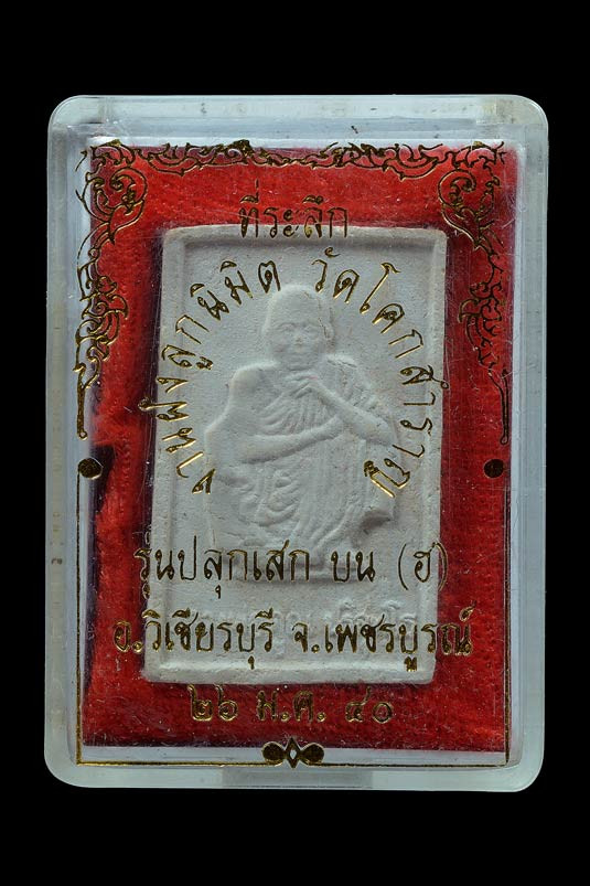 พระผงสี่เหลี่ยมรูปเหมือน ที่ระลึกงานฝังลูกนิมิต วัดโคกสำราญ อ.วิเชียรบุรี จ.เพชรบูรณ์ เมื่อวันที่ 26 มกราคม พ.ศ.2540 ( กล่องเดิม ) |