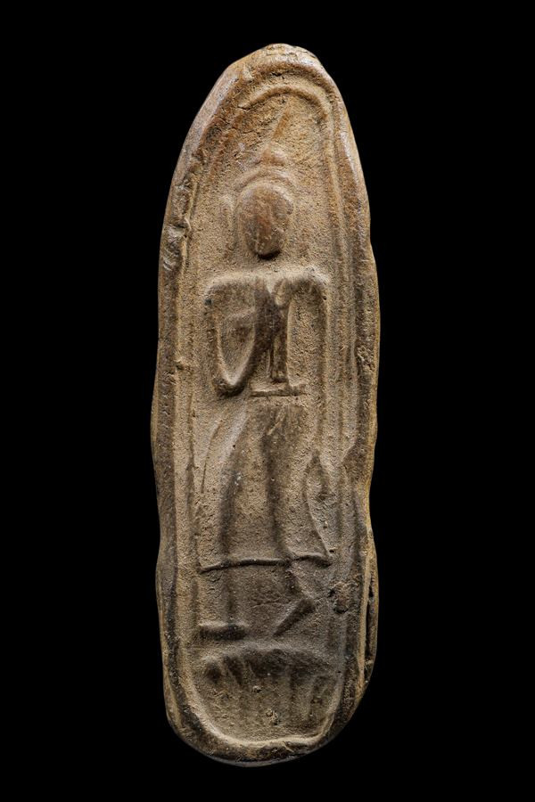 พระกรุวัดท้ายตลาด ปางอุ้มบาตร กรุงเทพ เนื้อผงใบลาน |