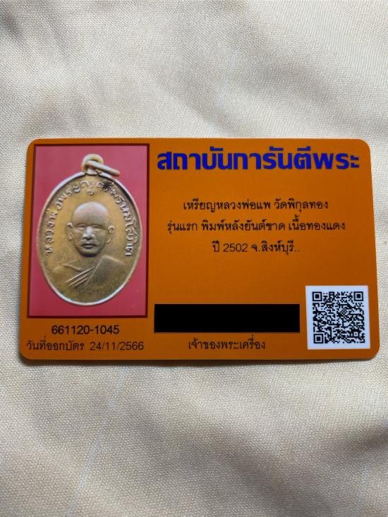 เหรียญรุ่นแรกหลวงพ่อแพ วัดพิกุลทอง พิมพ์หลังยันต์ขาด เนื้อทองแดง ปี2502 จ.สิงห์บุรี พร้อมบัตรรับรองฯ *พิจารณาแล้วขอคนที่พร้อม จะได้ไม่เสียเวลาทั้ง 2 ฝ่ายครับ |