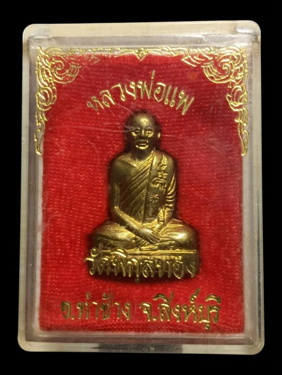 รูปเหมือนปั๊ม หลวงพ่อแพ เสาร์ 5 แพ 9.1 วัดพิกุลทอง จ.สิงห์บุรี ปี 2537 ทองเหลือง ตอกโค๊ต มีกล่องเดิม สวยครับ |