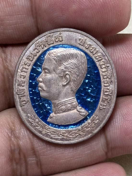 *วัดใจ* เหรียญรัชกาลที่๕ หลวงพ่อแพ วัดพิกุลทอง พิมพ์ใหญ่ เนื้อเงินลงยา พร้อมกล่อง