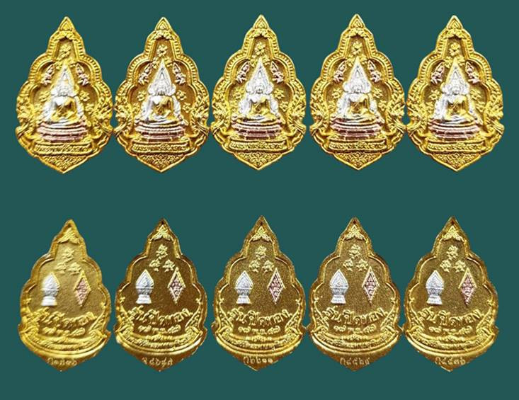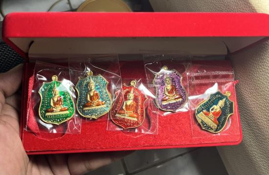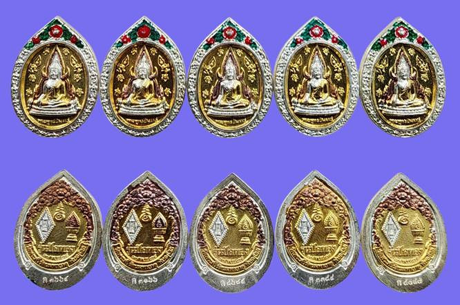 ( 5 องค์ ) เหรียญพระพุทธชินราช พิมพ์ รูปไข่ พิมพ์เล็ก เนื้อสามกษัตริย์ลงยา รุ่น ปิดทอง ปี 2547 สภาพสวยเดิมๆ มีโค๊คทุกองค์ครับ |