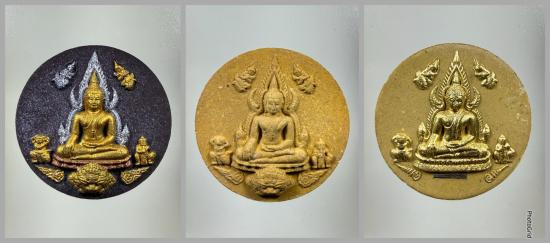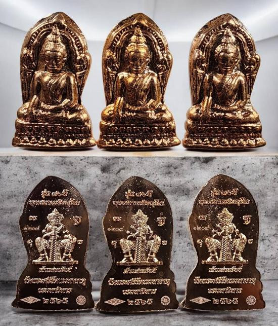 ( 3 องค์ ) พระพุทธชินราชใบเสมา รุ่น 70 ปีพุทธสมาคม เนื้อสัมฤทธิ์แดง พิมพ์ใหญ่ วัดพระศรีรัตนมหาธาตุจังหวัดพิษณุโลก สภาพสวยเดิมๆครับ |