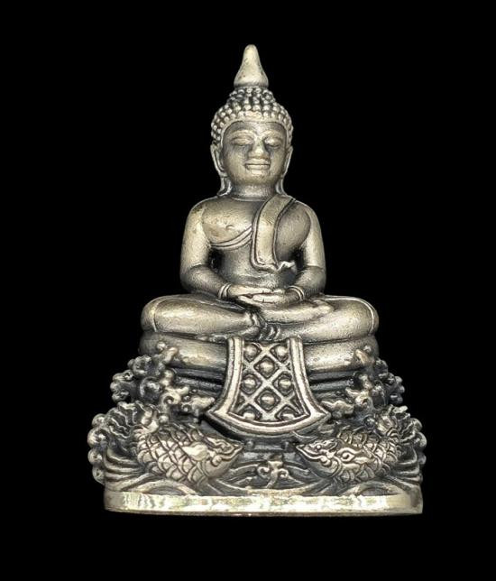 พระพุทธโสธร รุ่น ประวัติศาสตร์ 80 ปี กรมตำรวจ ปี2538 เนื้อเงินประกายเพชร(เงินพ่นทราย) |