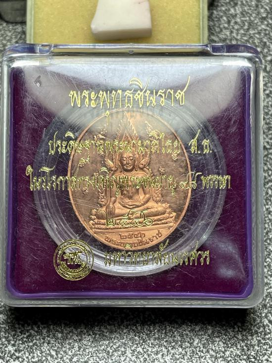 เหรียญพระพุทธชินราช หลัง ส.ก. (เฉลิมพระเกียรติ 70 พรรษา สมเด็จพระนางเจ้าสิริกิต์ฯ) เนื้อทองแดง ปี 2545 วัดพระศรีรัตนฯ พิษณุโลก พร้อมตลับ |