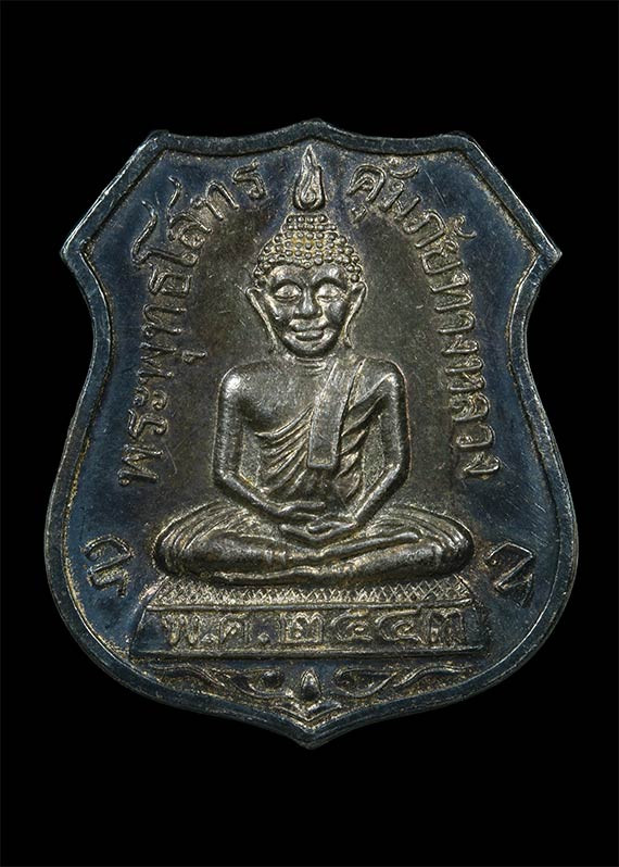 พระพุทธชินราชเสมา (พิมพ์เล็ก) เนื้อเงินทรายนวลขัดเงา "รุ่น มหาจักรพรรดิ์ " ปี 2545 สวย เดิม พร้อมกล่อง |