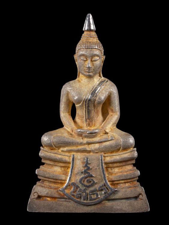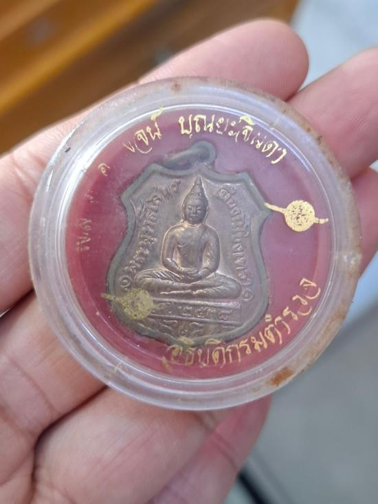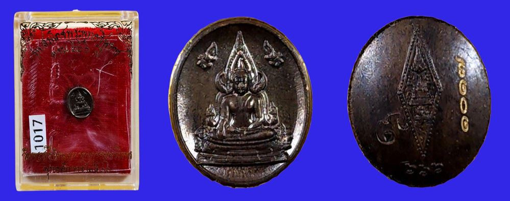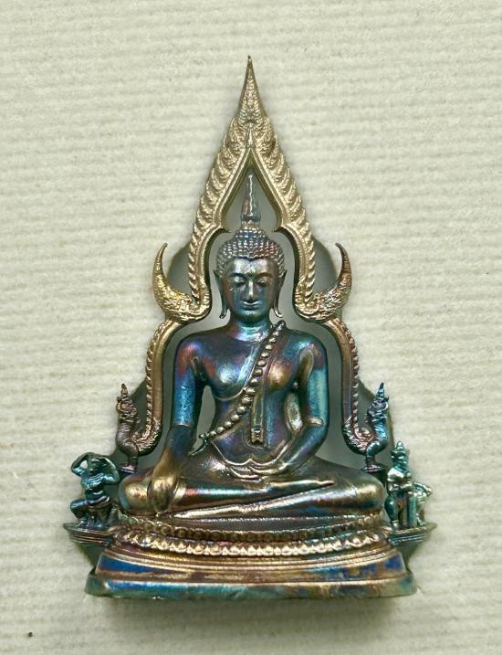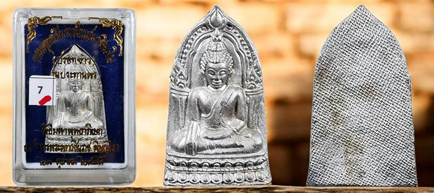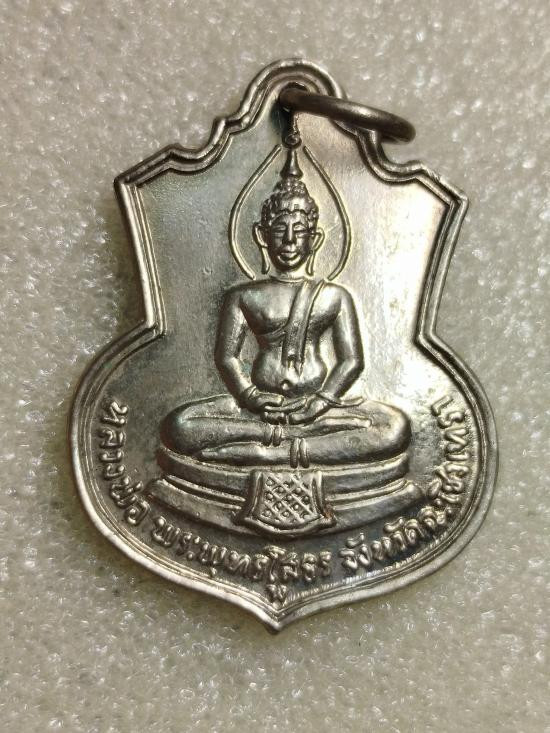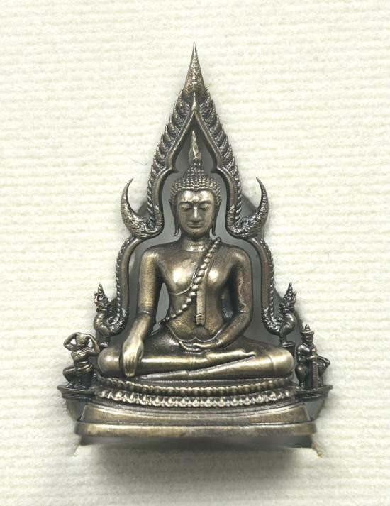 พระพุทธชินราชใบเสมา รุ่นประทานพร เนื้อชินเงิน หรือเนื้อปรอทขาว จัดสร้างขึ้นในปี 2547 มาพร้อมกล่องเดิมจากวัดครับ ข้างหลังด้านล่างตอกโค้ด นะ ขนาดองค์พระ สูง 4.0 ซม. กว้าง 2.5 ซม.ครับ 6 |