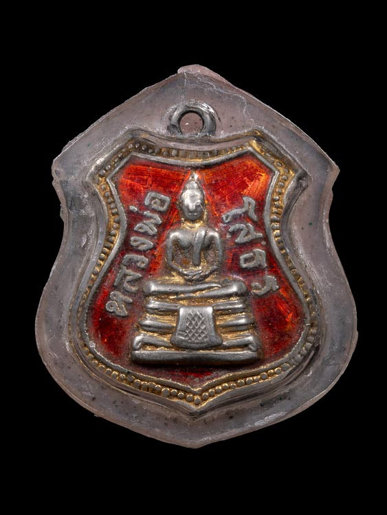 100 / ชินราชใบเสมาเนื้อดินพิธีจักรพรรดิ์ 2515 วัดใหญ่พิษณุโลก หลวงพ่อกวยปลุกเสก |