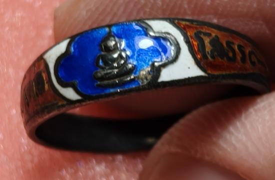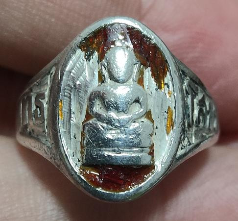 วัดใจ 100 แหวนเนื้อเงินลงยาแดง หลวงพ่อโสธร ปี 2503 น้ำหนัก 3.51 กรัม ขนาดเส้นผ่าศูนย์กลาง 1.8 ซม ประมาณเบอร์ 8 เคาะเดียวแดง |