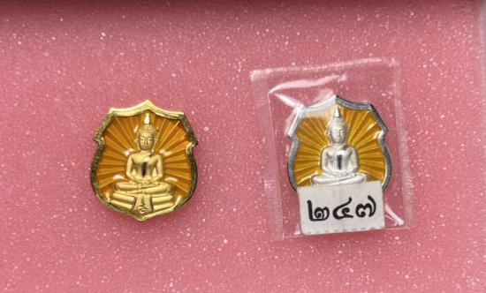 วัดใจ!! เหรียญใบโพธิ์ หลวงพ่อโสธร 2560 ตำรวจ เนื้อเงินลงยาเหลือง |