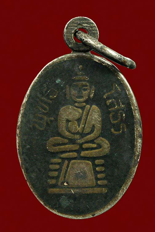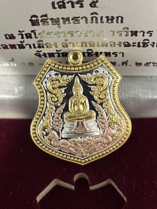 หลวงพ่อโสธร เนื้อเงินลงถม+ทองร้านจิวเวอรี่ ด้านหลังองค์พระมีตอกโค็ท ส. |