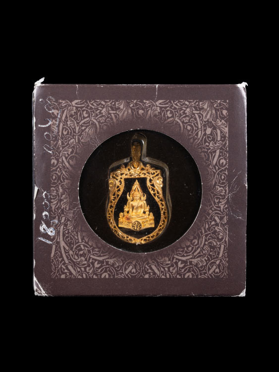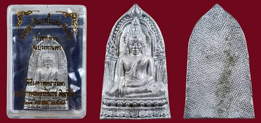 รูปหล่อโบราณพระพุทธชินราชอินโดจีน รุ่นมหาสิทธิโชค เนื้อชนวน พิมพ์เล็ก หมายเลข 845 สภาพสวยเดิมๆพร้อมกล่องครับ |