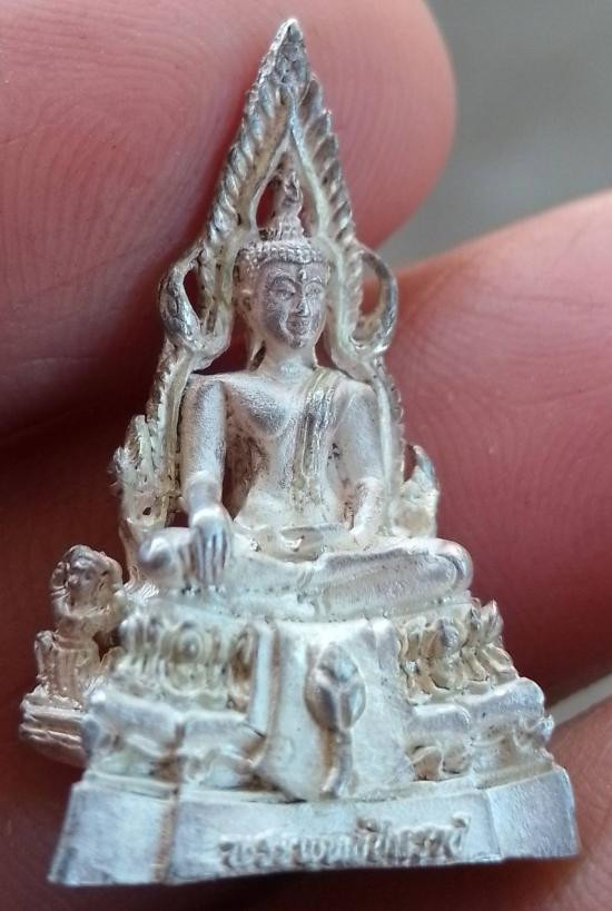 พระพุทธชินราชใบเสมา รุ่นประทานพร เนื้อชินเงิน หรือเนื้อปรอทขาว จัดสร้างขึ้นในปี 2547 มาพร้อมกล่องเดิมจากวัดครับ ข้างหลังด้านล่างตอกโค้ด นะ ขนาดองค์พระ สูง 4.0 ซม. กว้าง 2.5 ซม.ครับ 5 |