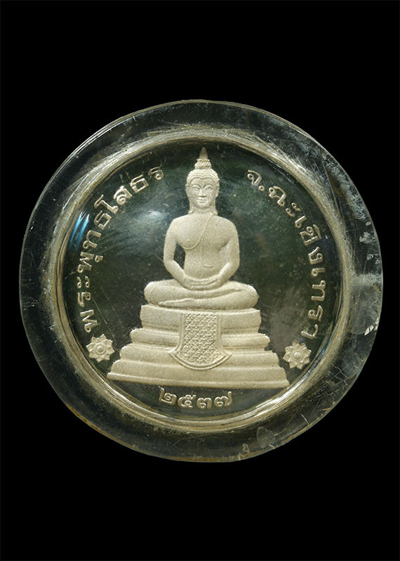 พระพุทธโสธร รุ่น 80 ปี กรมตำรวจ ปี 2538 เนื้อเงินขัดเงา หมายเลข 458714 |