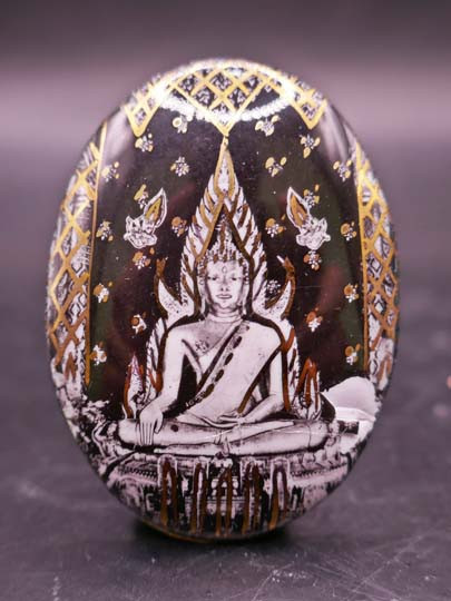 เหรียญเม็ดแตงหลวงพ่อโสธร เนื้อเงินลงถม ไม่ทราบปีครับ |