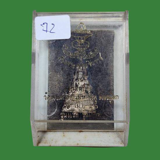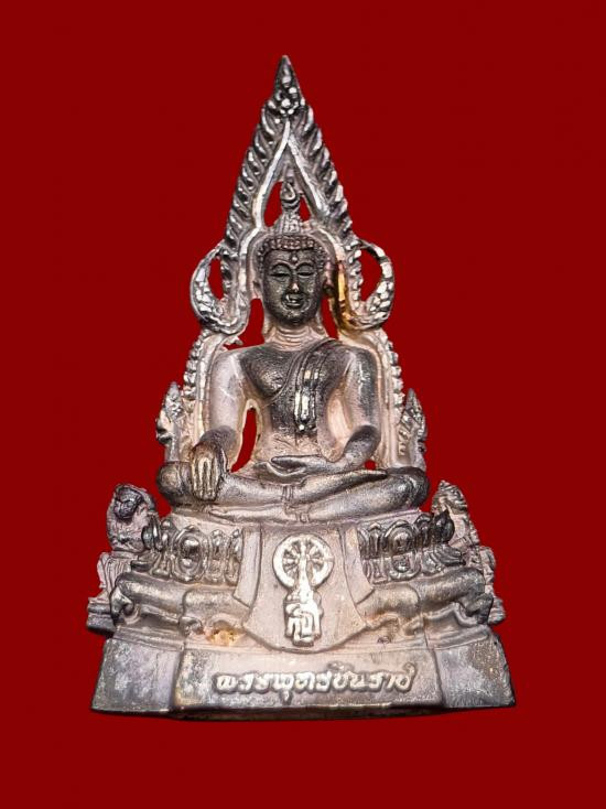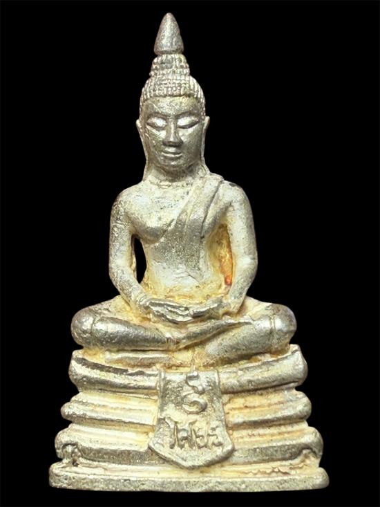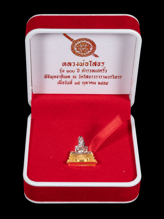 รูปหล่อหลวงพ่อโสธร รึ่นสร้างโรงพยาบาล หลังตราประจำสมเด็จพระสังฆราช วัดโสธรวรารามวรวิหาร จ.ฉะเชิงเทรา เนื้อเงินพ้นทราย หมายเลข 5813 กล่องเดิมๆ |