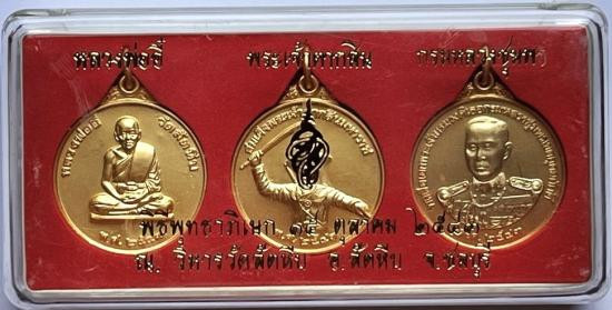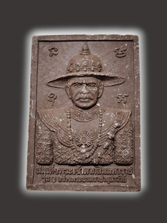 สมเด็จพระเจ้าตากสินมหาราชประกอบพุทธาภิเษก จ.ตาก ๒๘ ธค.๒๕๒๙ สภาพสวยมากน่าจะเป็นกะไหล่ทองแต่สวยยังกะเนื้อทองคำพร้อมตลับอิตาลี่และกล่องเดิมหายาก |