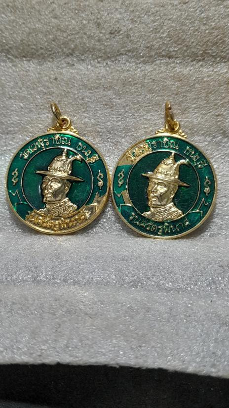 วัดใจเคาะเดียว......150.......เหรียญสมเด็จพระเจ้าตากสินมหาราช รุ่นศัตรูพินาศ เนื้อกะไหล่ทองลงยาฉากเขียว วัดเวฬุราชิณ ธนบุรี กรุงเทพฯ สวย รวม 2 เหรียญ |