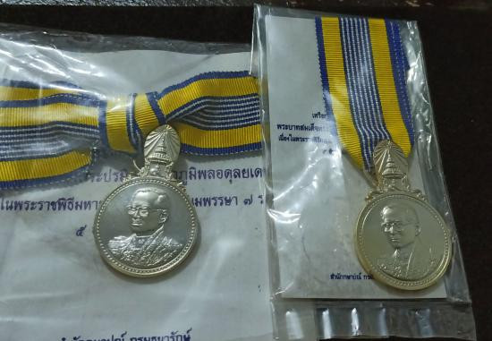 เหรียญแพรแถบเนื้อเงิน ชาย-หญิง ร9เฉลิมพระชนพรรษา7รอบ รวม2เหรียญ |
