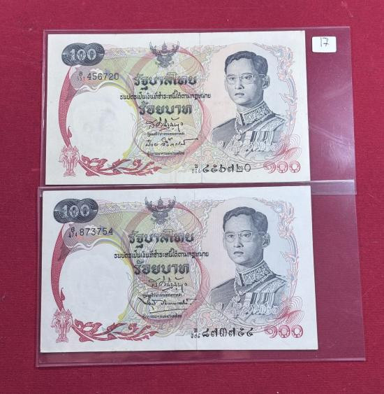 ธนบัตรแบบ10 ชนิด​ ราคา100บาท​ เรือหงส์ สภาพสวยตามรูป จำนวน 2 ใบ |