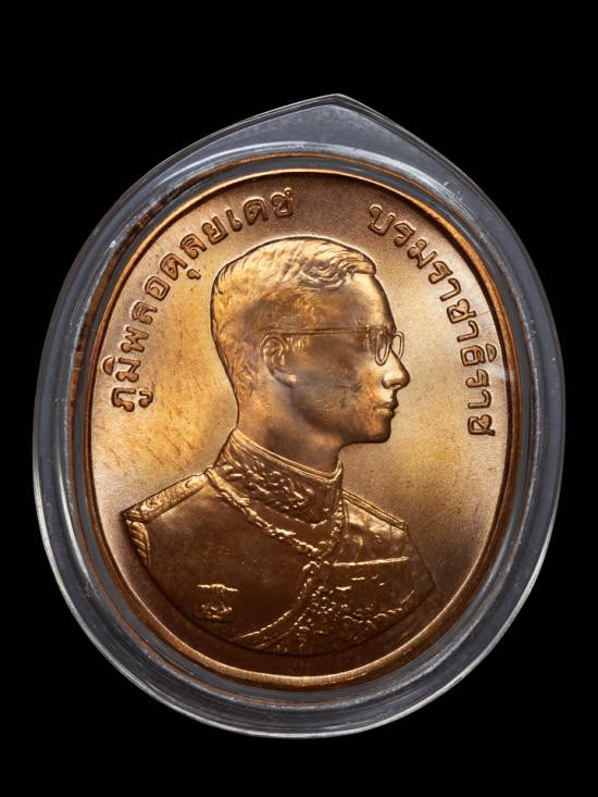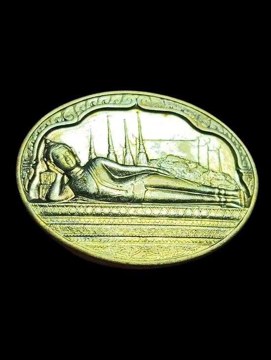 **100.** เหรียญพระนอน หลัง ภปร. พิธีใหญ่วัดโพธิ์ ฉลองในหลวงพระชนมายุครบ 5 รอบ พ.ศ. 2530 ซองเดิมซีลเดิม |