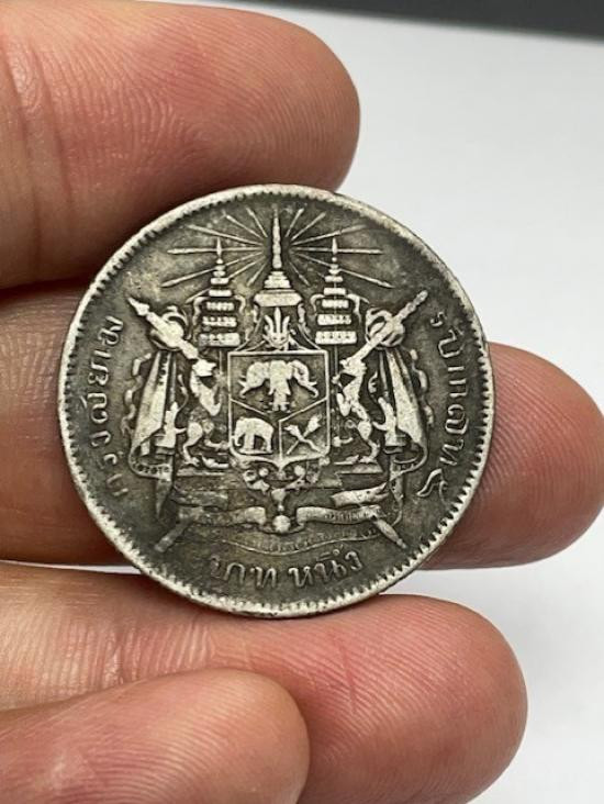วัดใจเหรียญ1บาท รัชกาลที่ 5 ((เนื้อเงิน)) สภาพใช้ หนัก15.03กรัม |