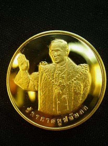 เหรียญในหลวง ร.9 80ปี แพทยสมาคม ผลิตโดย ฮูกานิน สวิสเซอร์แลนด์ (เคาะเดียว) |