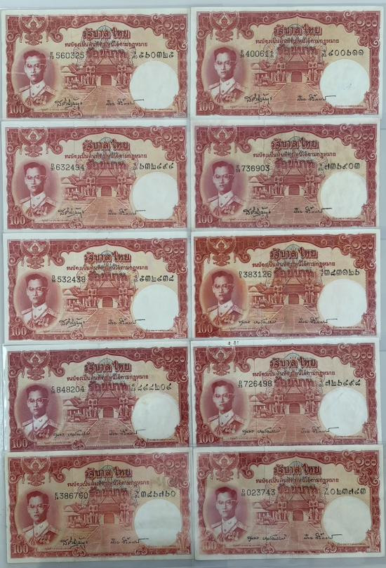 ธนบัตร 100 บาท รัชกาลที่ 9 แบบ 12 จำนวน 10 ใบ ช้างแดงใหม่100% |