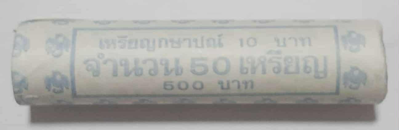 เหรียญ 10 บาท สองสี ฉลองสิริราชสมบัติครบ 50 ปี กาญจนาภิเษก ในสมัยรัชกาลที่ 9 ((9 มิถุนายน พ.ศ.2539)) บล็อคอิตาลี ไม่ผ่านการใช้งาน UNC บรรจุแบบหลอด 1 หลอด มี จำนวน 50 เหรียญ หลอดสวยกริป หลอดไม่แตกไม่ห |