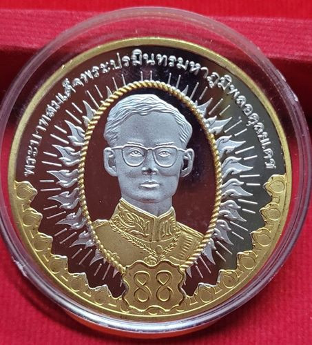 เหรียญในหลวง ร.9 พระชนมพรรษา 88พรรษา ปี 2558 เนื้อเงินขัดเงาเคลือบทองคำแท้บางส่วน เหรียญขนาดใหญ่ |