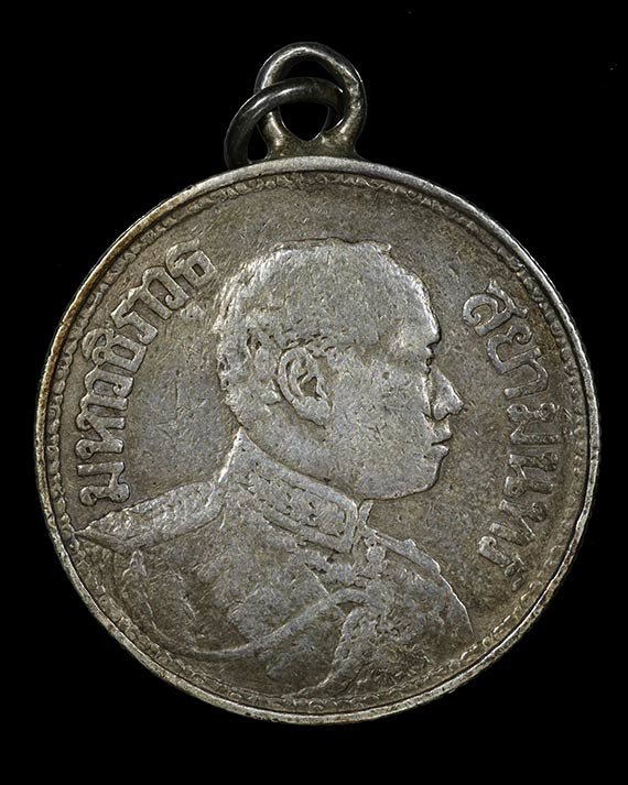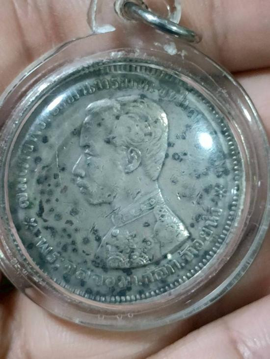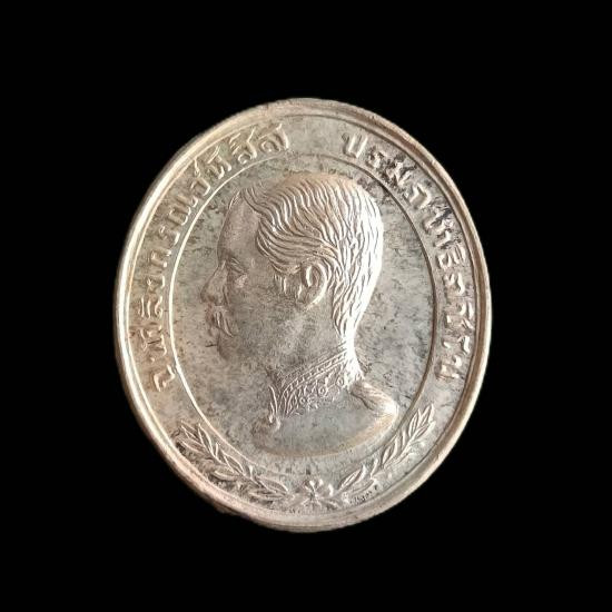 เหรียญ ร.5 หลังครุฑ มหาเศรษฐี ฉลองอายุ 72 ปี หลวงพ่อพุธ วัดป่าสาลวัน ปี 2536 กระไหล่เงิน |