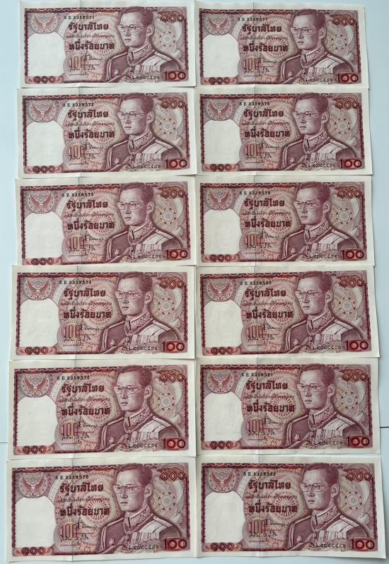 ธนบัตร 100 บาท รัชกาลที่ 9 แบบ 12 จำนวน 12 ใบ ช้างแดง เลขเรียง ใหม่100% |