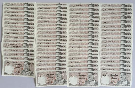 ธนบัตร 10 บาท รัชกาลที่ 9 แบบ 12 (ทรงม้า) จำนวน 100 ใบ เลขเรียง สภาพตามรูป |