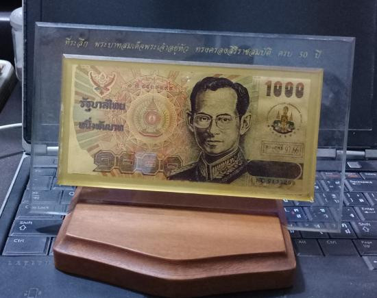 ธนบัตรทองคำ1000บ.ที่ระลึก ในหลวง ร9 ครองราชสมบัติครบ50ปี |