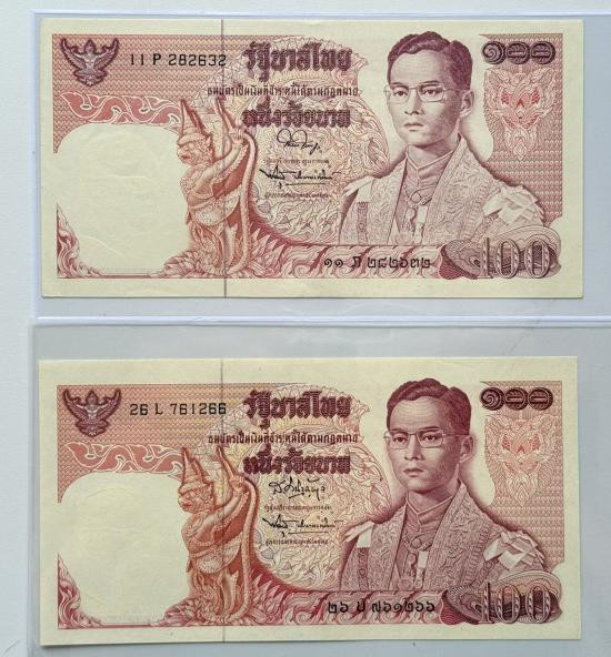 แบงค์ 100 รัชกาลที่ 9 แบบ 11 จำนวน 2 ใบ สภาพสวยตามรูป |