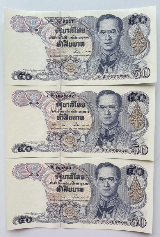 ธนบัตร 50 บาท รัชกาล 9 ลายน้ำสมเด็จย่า จำนวน 3 ใบ สวยเดิมๆๆ |