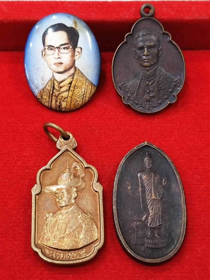 เหรียญร.5 2 เหรียญ + เหรียญร.9 3 เหรียญ +ล็อกเก็ต ร.9 2 องค์ + สมเด็จพระนางเจ้าสิริกิติ์ +เหรียญร.10. |