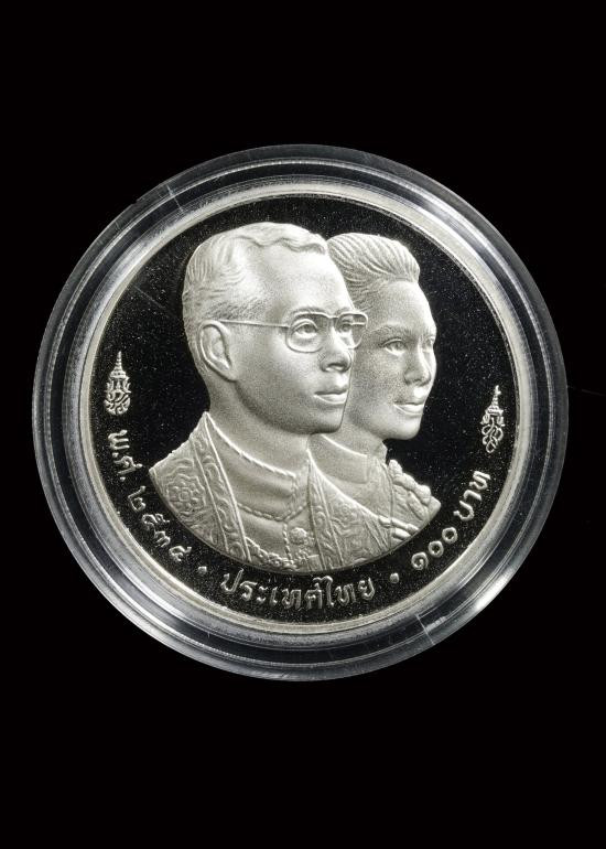 เหรียญกษาปณ์เนื้อเงิน ชนิดราคาหน้าเหรียญ 150 บาท ที่ระลึก 75 พรรษา สมเด็จพระศรีนครินทราบรมราชชนนี ปี 2518 หายากแล้ว จำนวนการผลิตน้อย |